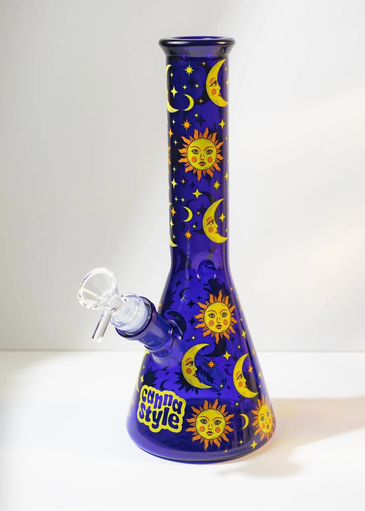 - This bong features true midnight blue glass & our custom 90’s Celestial print