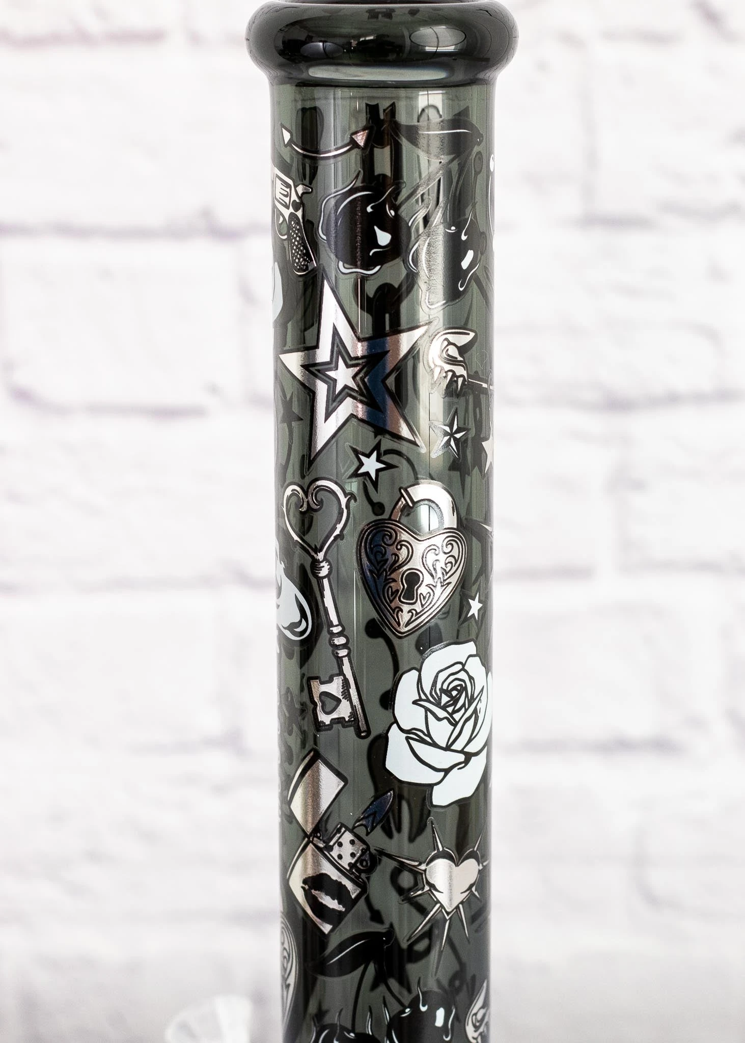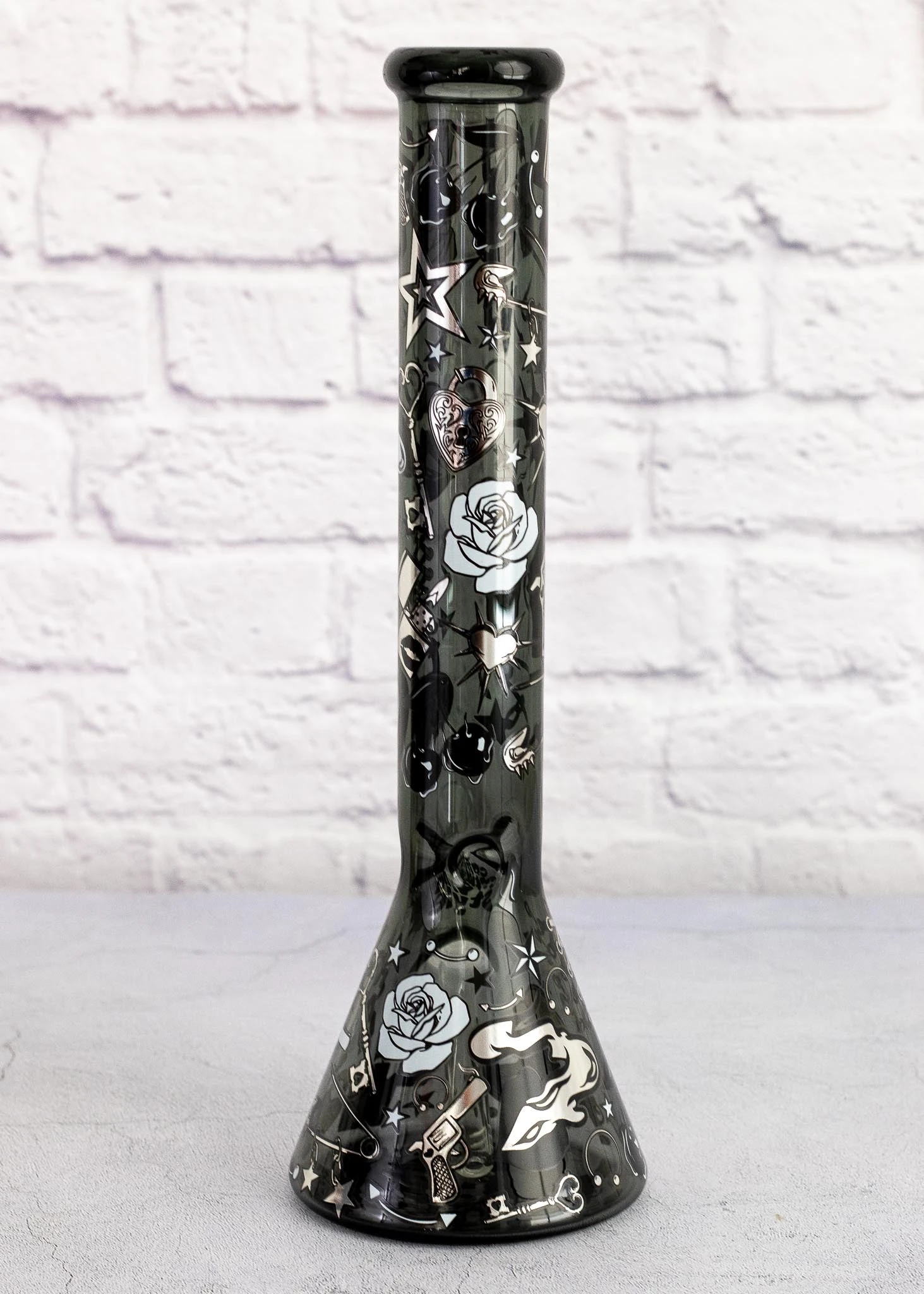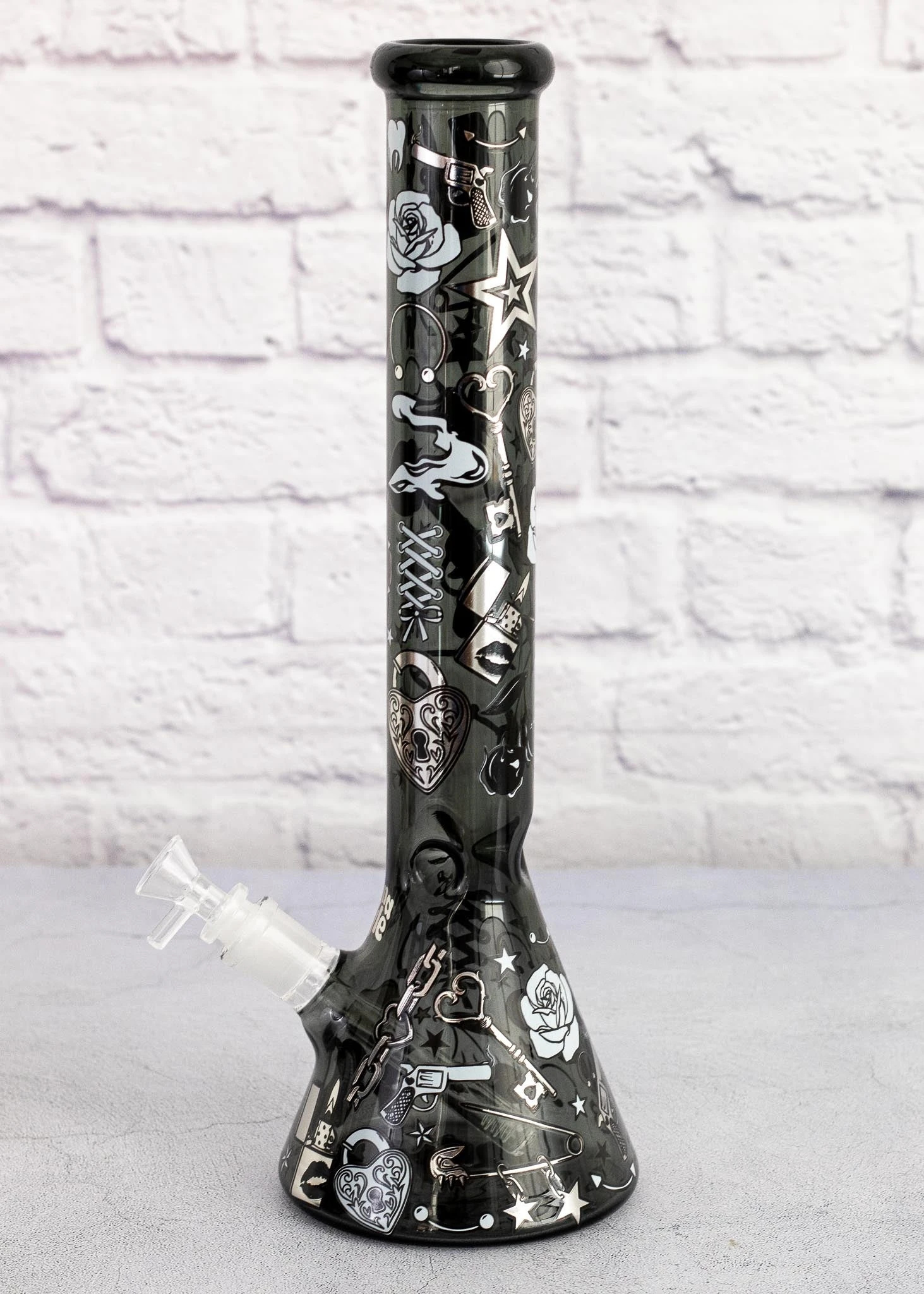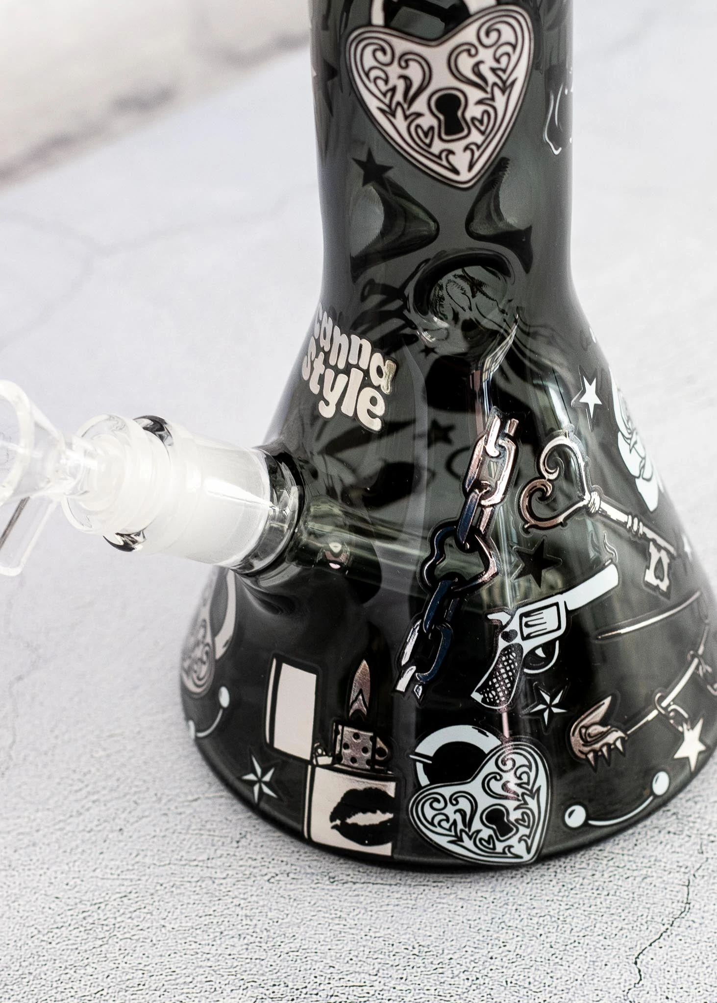 - This bong features our custom alt girl print in black, white and silver on true black tinted glass