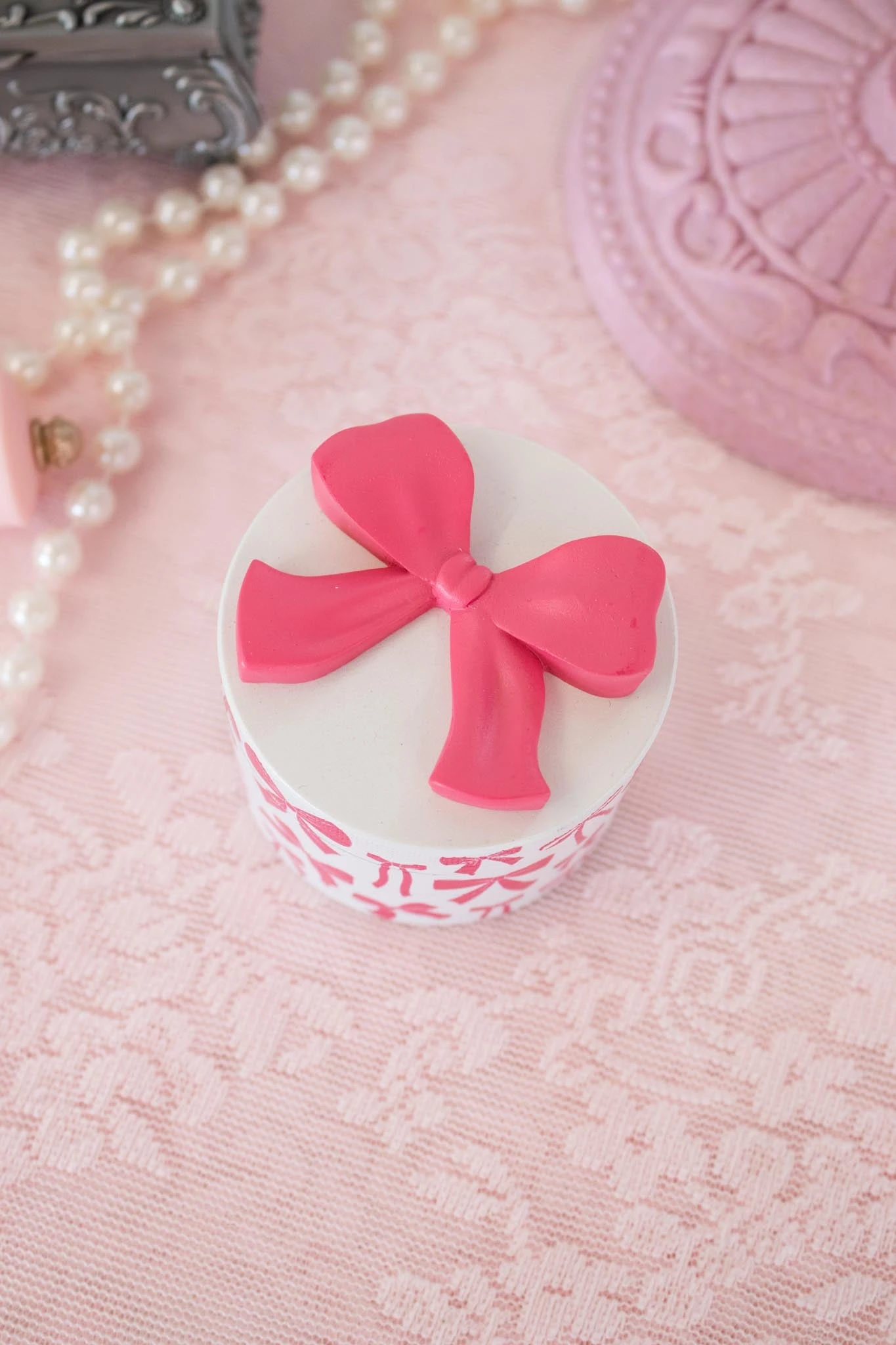 - Featuring an all-over pink bow print on the sides and a 3D pink bow on the top