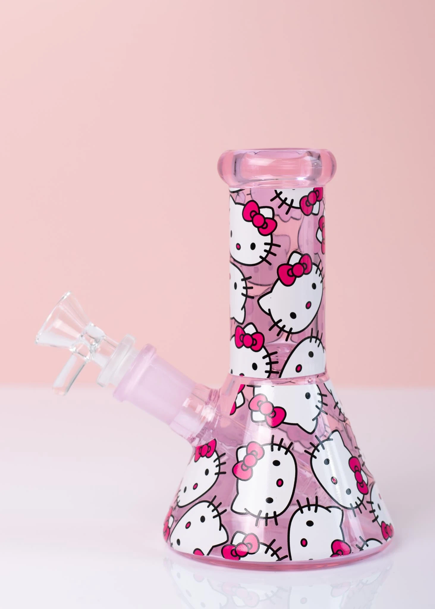 - This mini bong features a cute kitty print on true pink glass