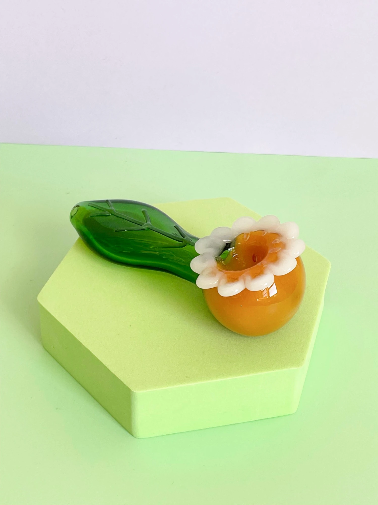 - This flower pipe is handmade of glass and features fine details in the caramel yellow bowl and green stem, giving it a beautiful feminine touch