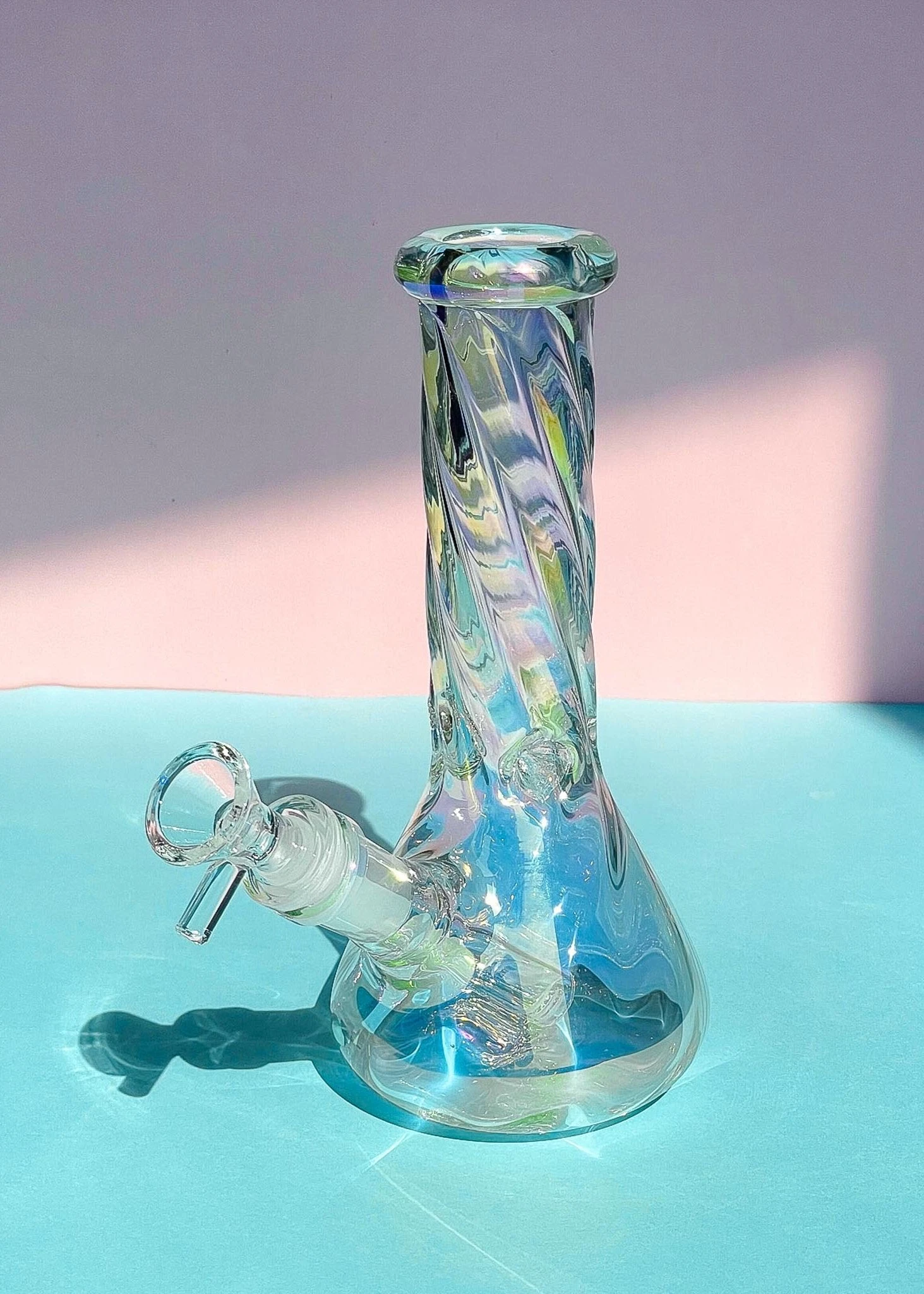 IRIDESCENT SWIRL BONG 8″(Mini Iridescent Swirl Bong)
