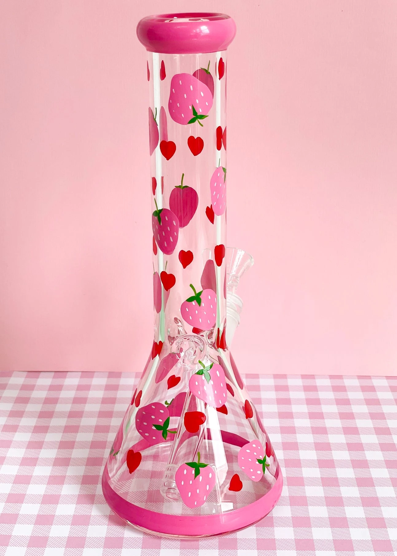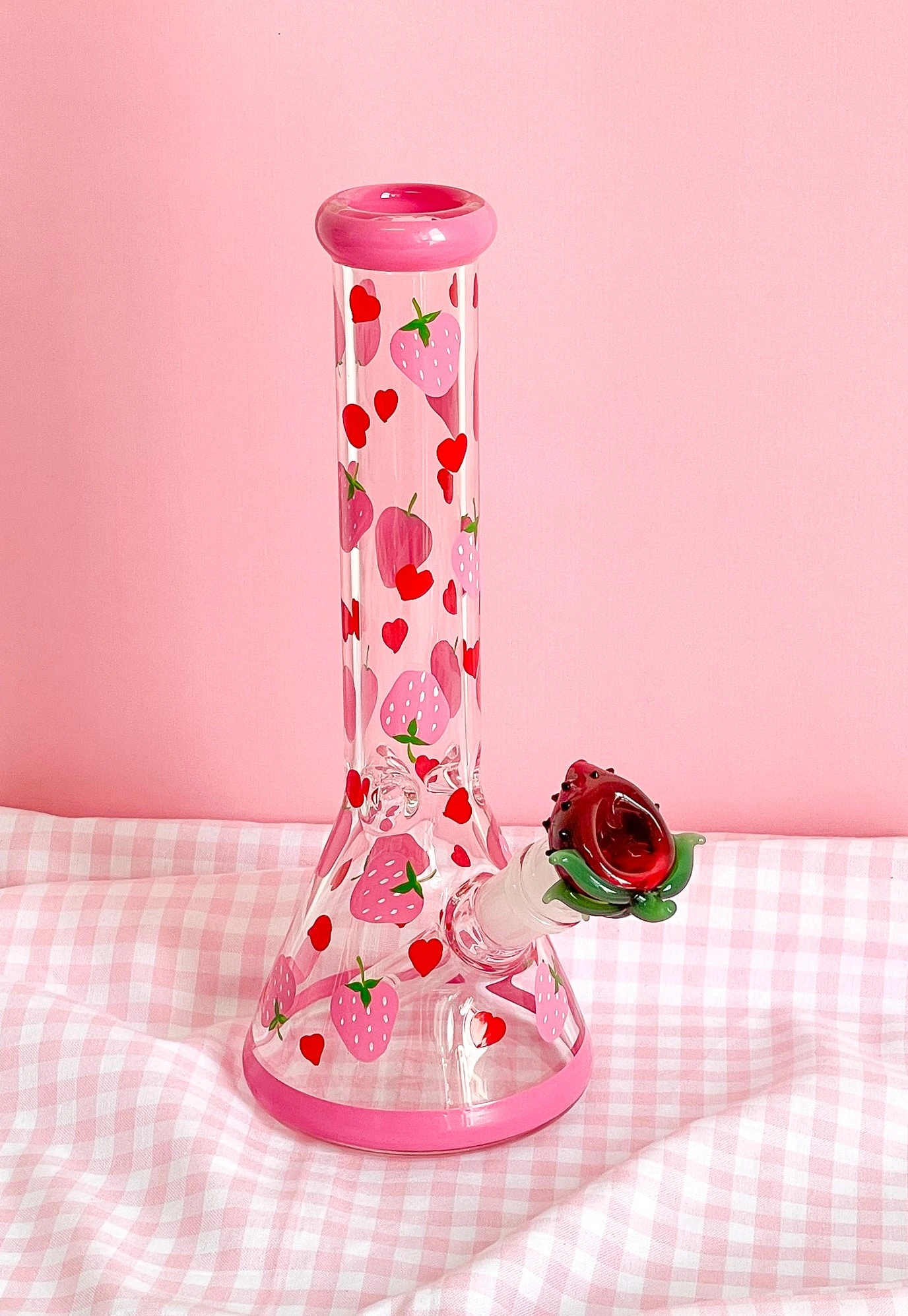 - This bong is adorned with adorable hand-painted pink strawberries and red hearts
