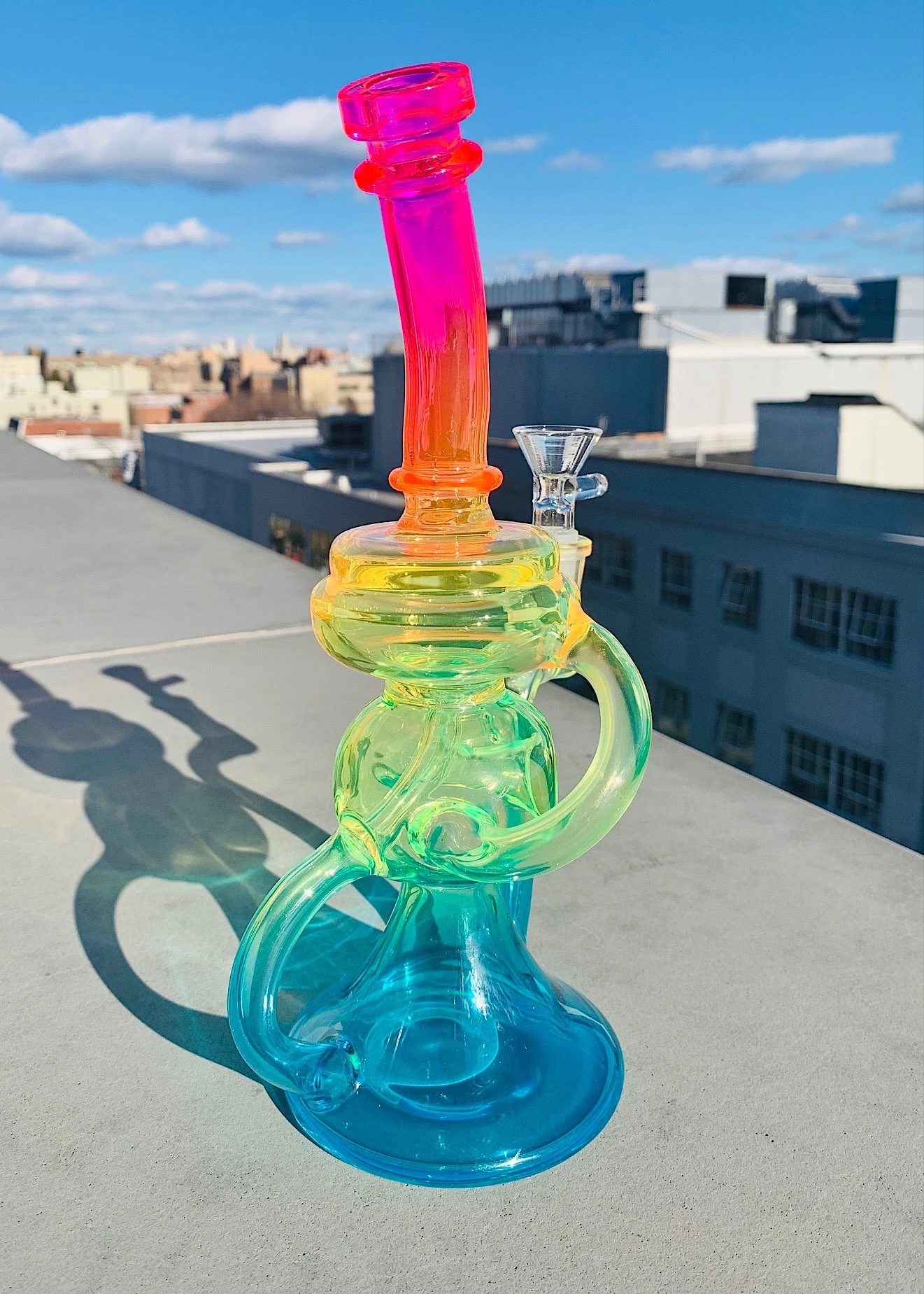 NEON RAINBOW RECYCLER BONG (uv Reactive)(Neon Rainbow Recycler Bong Rig)