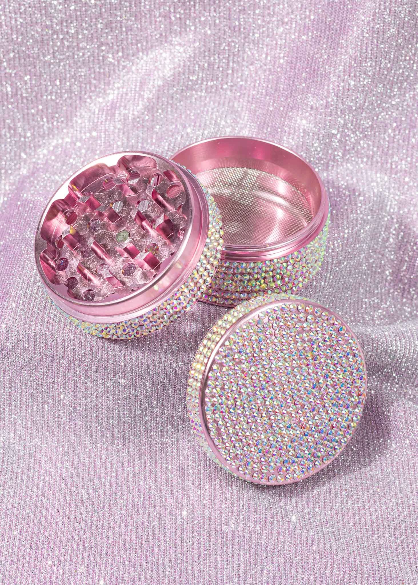 - This pink grinder is completely bedazzled in iridescent sparkly rhinestones