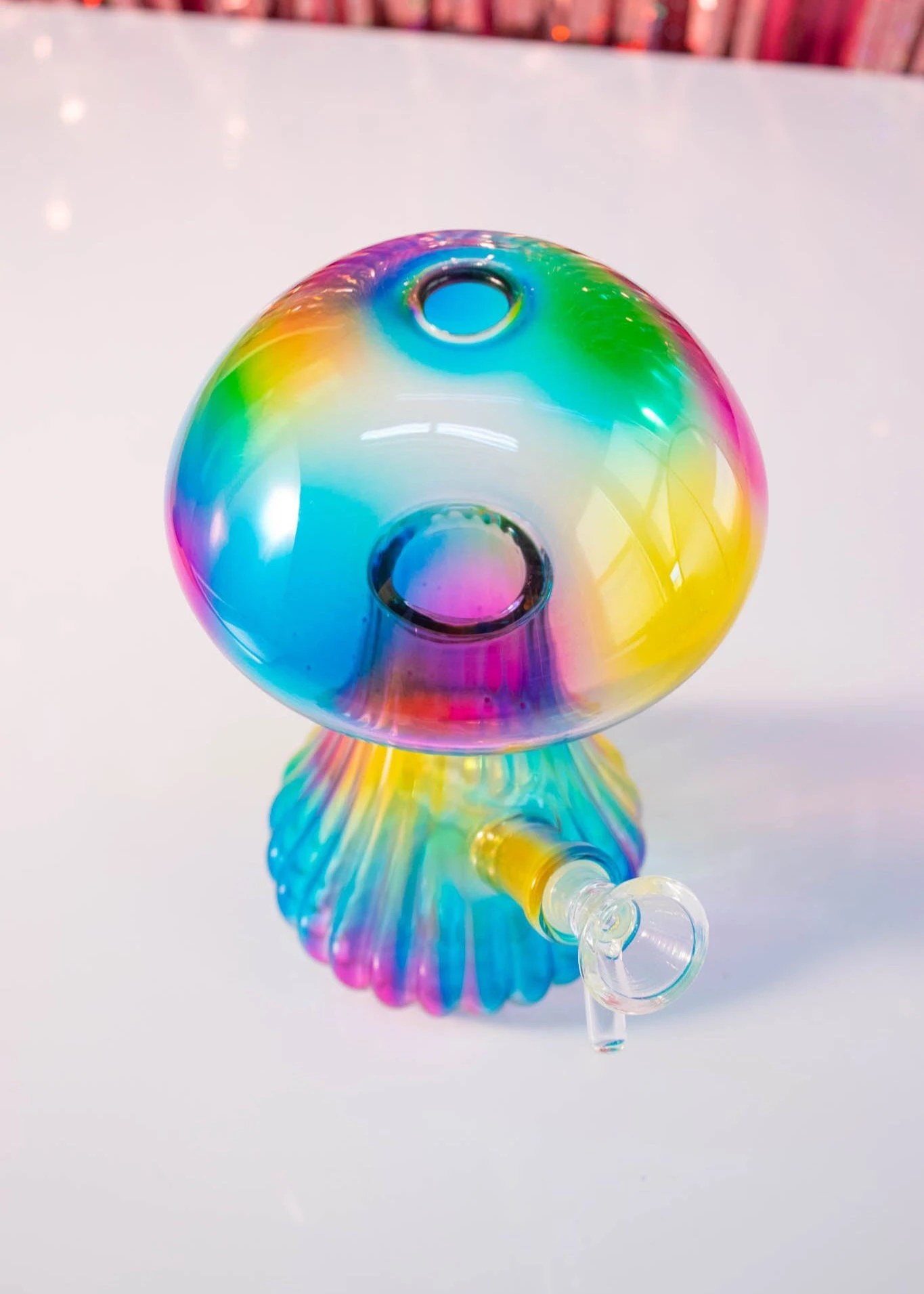 - This 3d shaped mushroom bong features a tie-dye colored finish and a fun ribbed design in the base