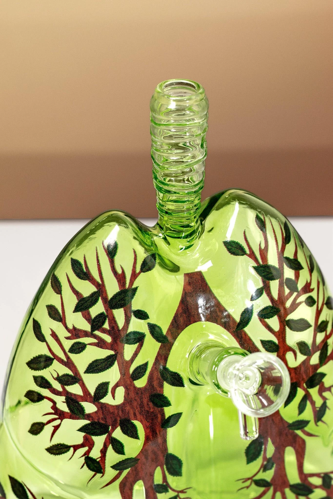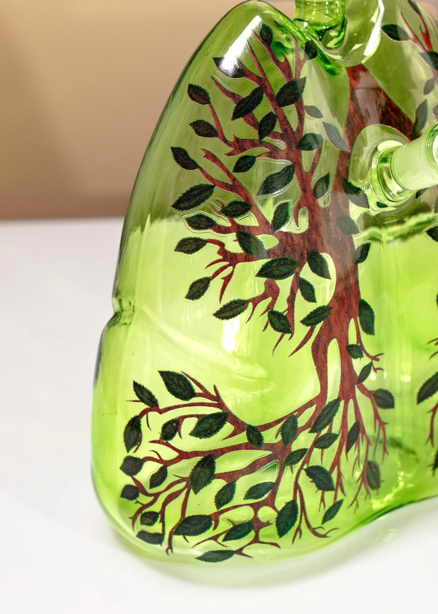 - This handcrafted bong is intricately designed to resemble a pair of lungs, finished with a custom tree branch graphic